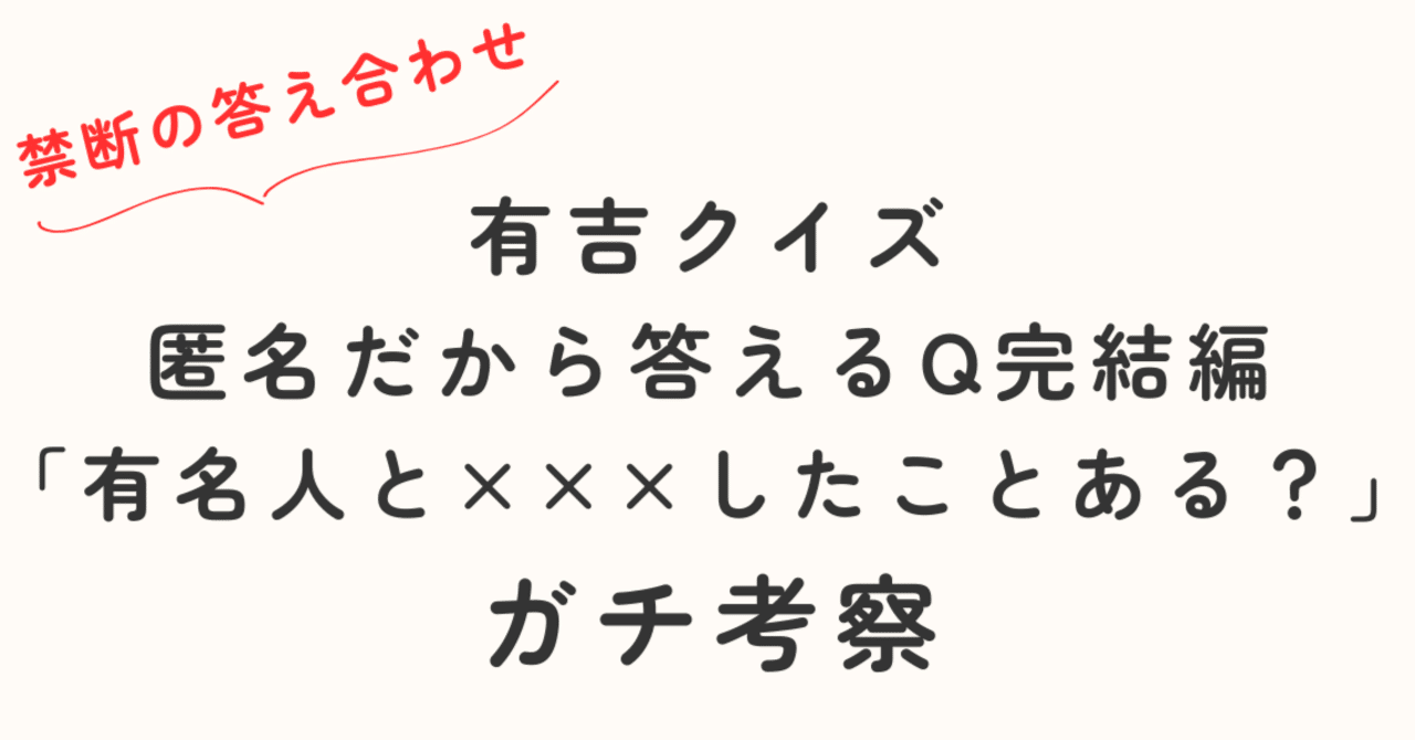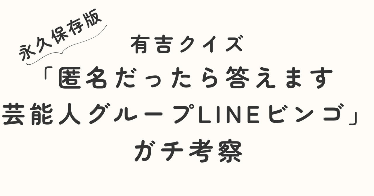 今回は有吉クイズ『匿名だったら答えます 芸能人グループLINEビンゴ第2弾』について予想(考察)を記事にしました。
