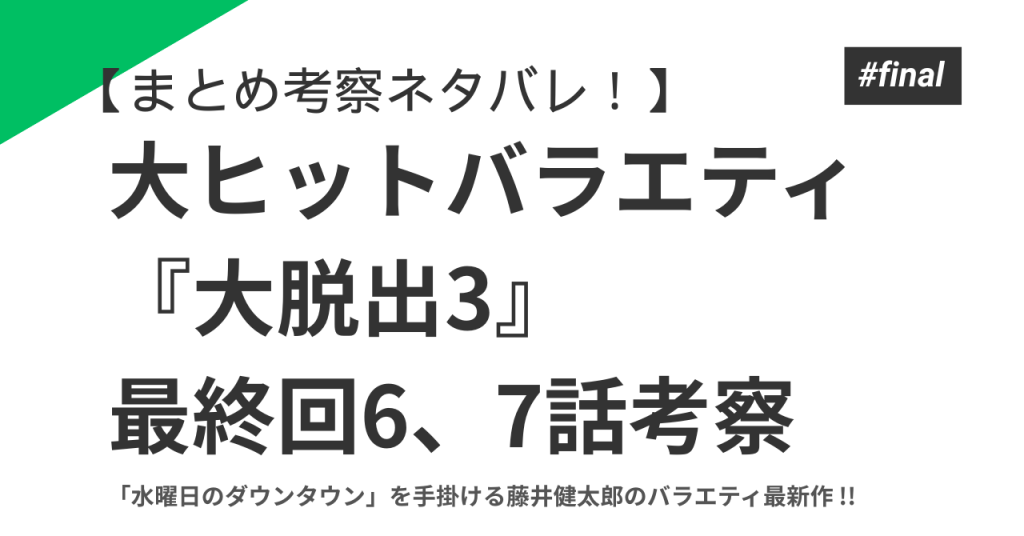 【まとめ考察ネタバレ!】大ヒットバラエティ『大脱出3』最終回6、7話考察